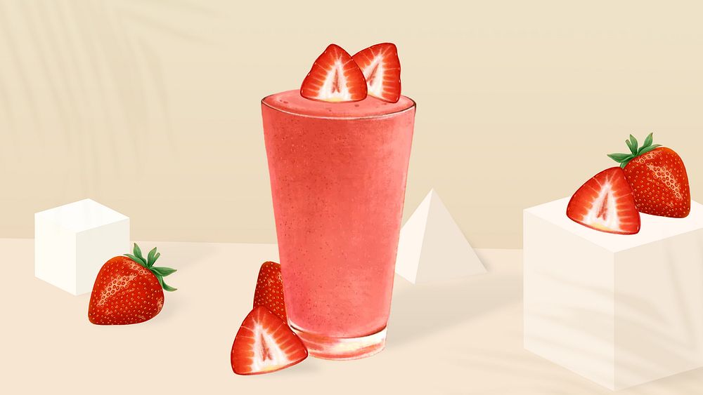 Strawberry smoothie glass HD wallpaper, healthy drink illustration