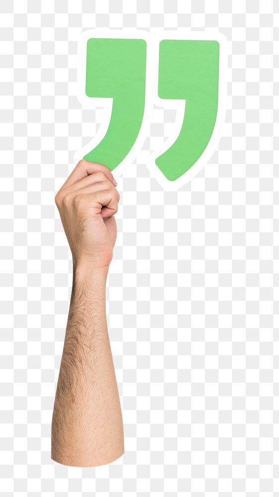 Quotation mark png hand holding sign, transparent background