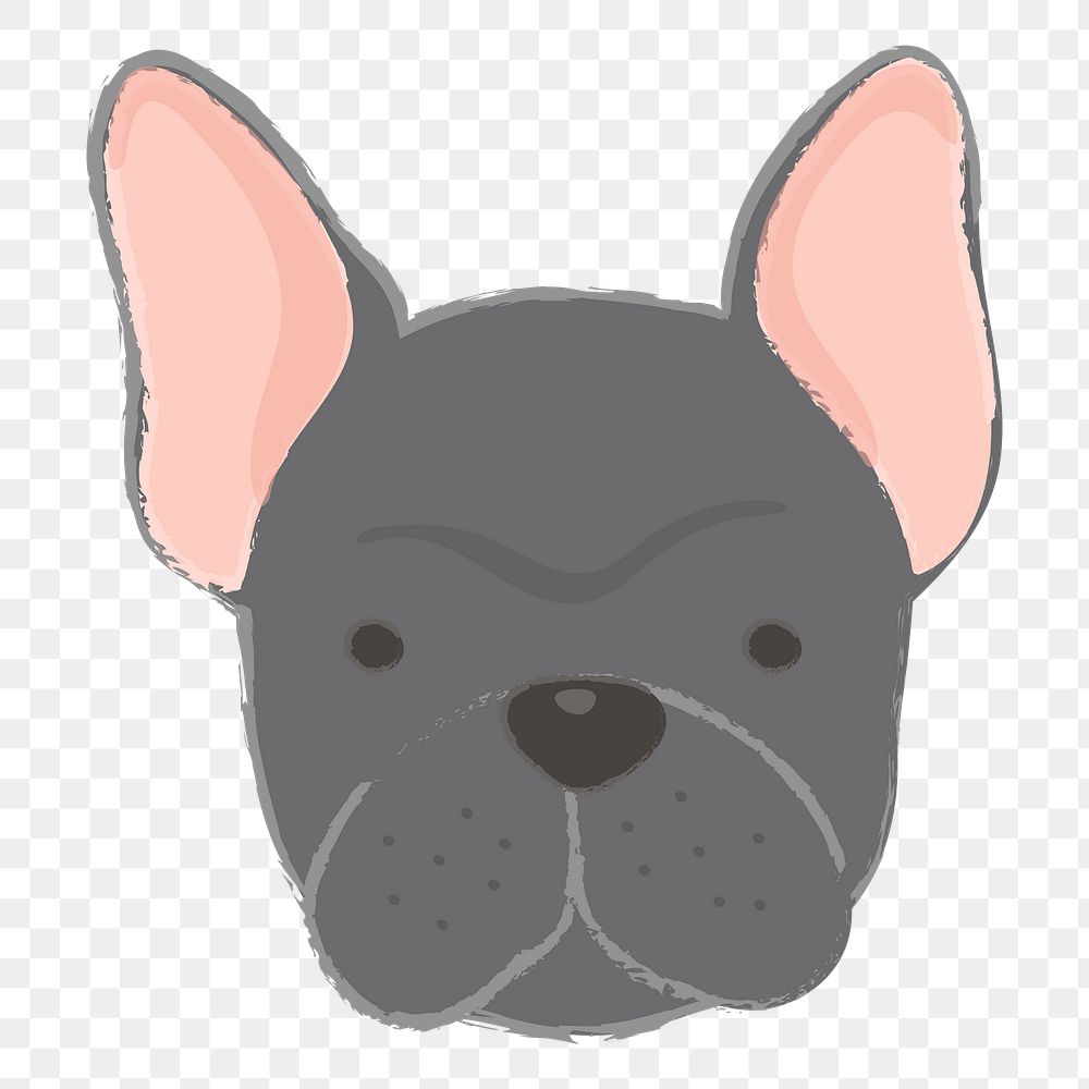 Png dark gray bulldog hand drawn sticker, transparent background