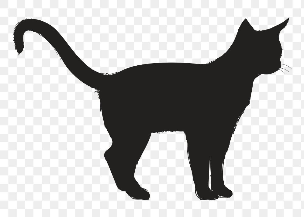 Png black cat silhouette, transparent background