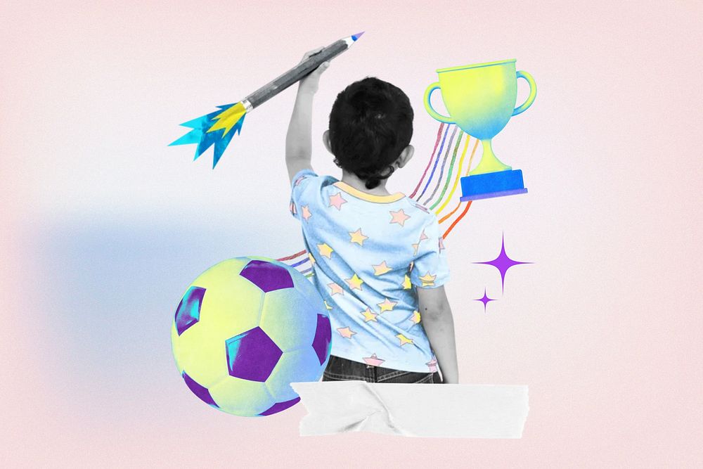 Kids activities, gradient education collage remix