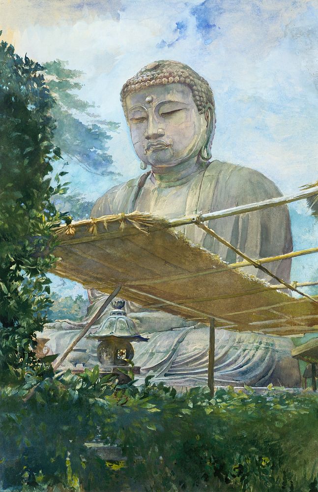The Great Statue of Amida Buddha at Kamakura, Known as the Daibutsu, from the Priest's Garden (1887) vintage painting by John La Farge. Original public domain image from The MET Museum. Digitally enhanced by rawpixel.