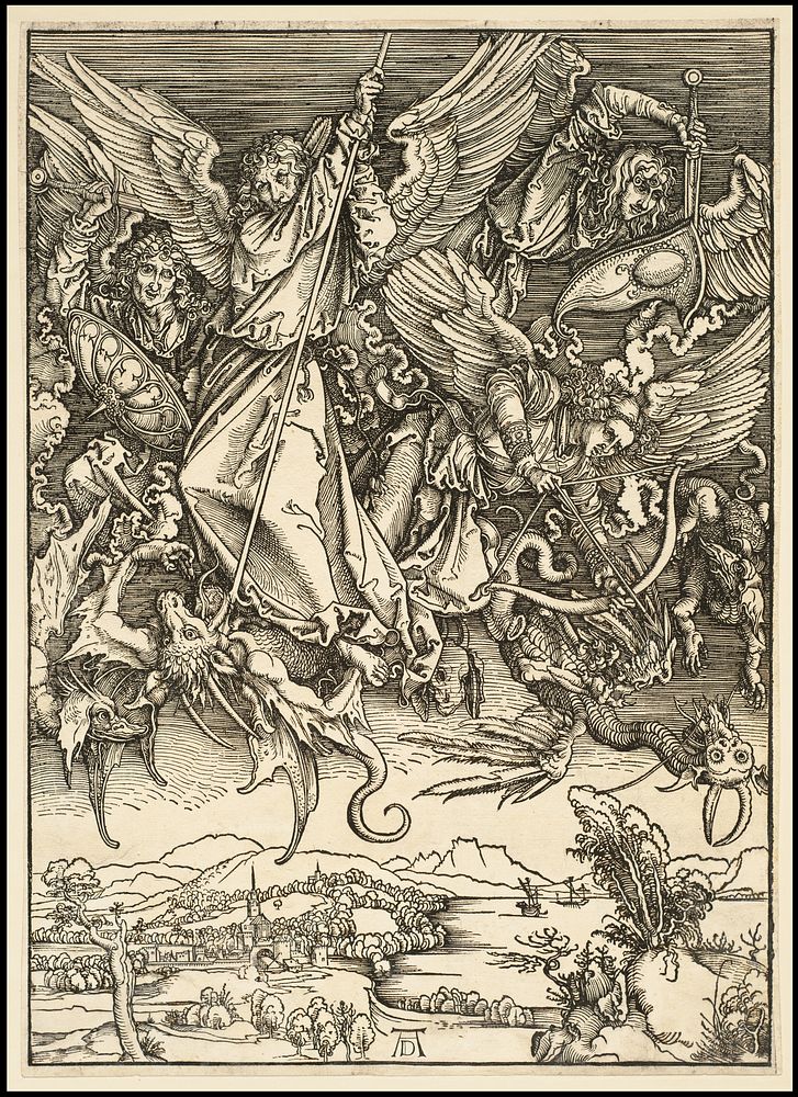The Apocalypse: Saint Michael Fighting the Dragon (1497) by Albrecht Dürer