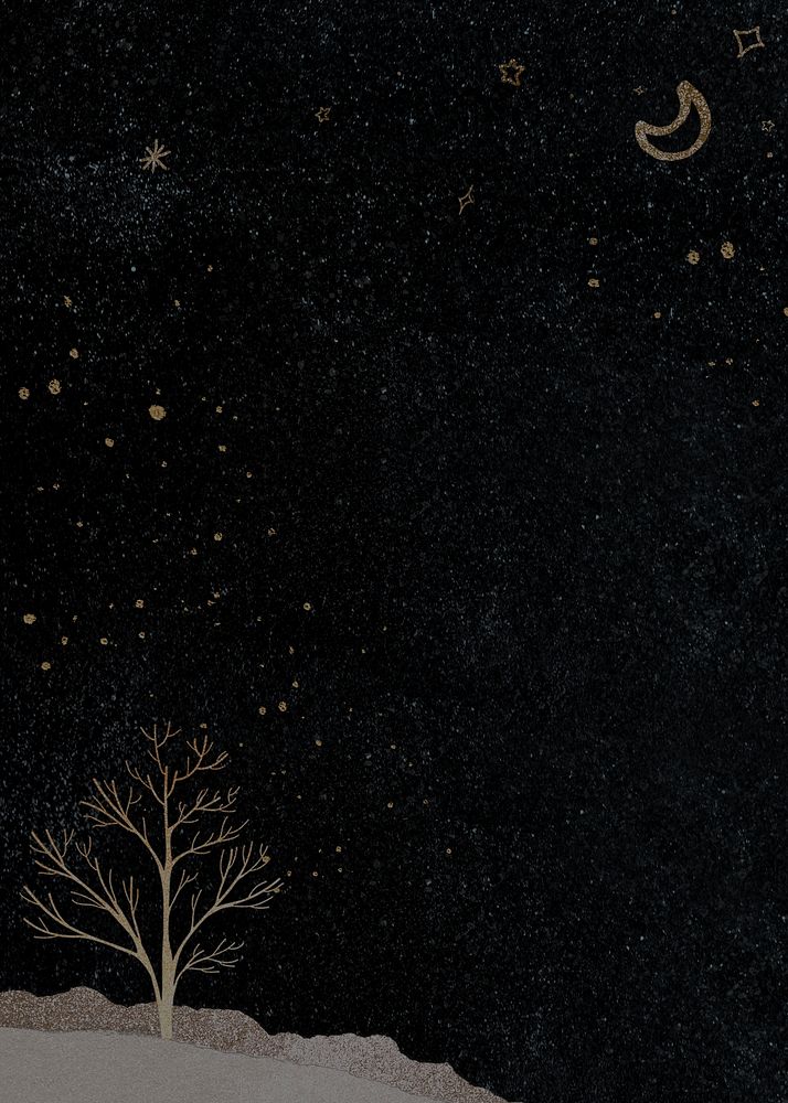 Aesthetic night landscape background, ripped paper border