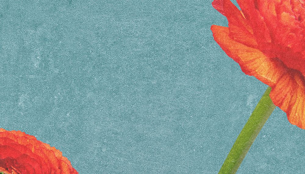Blue aesthetic textured background red flower border