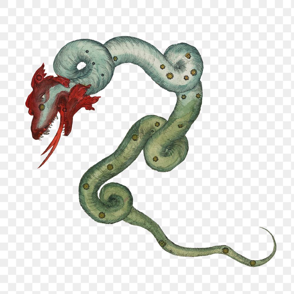 Draco constellation png, vintage astrology illustration by Ignace Gaston Pardies on transparent background. Remixed by rawpixel.