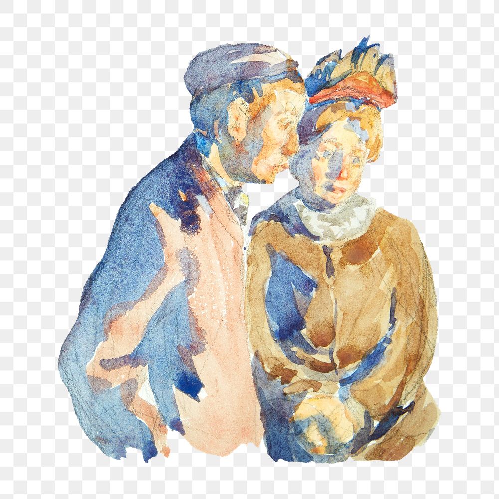 PNG Watercolored couple illustration transparent background. Remixed by rawpixel.