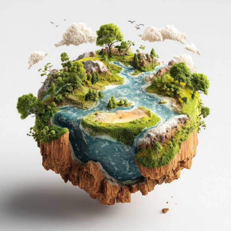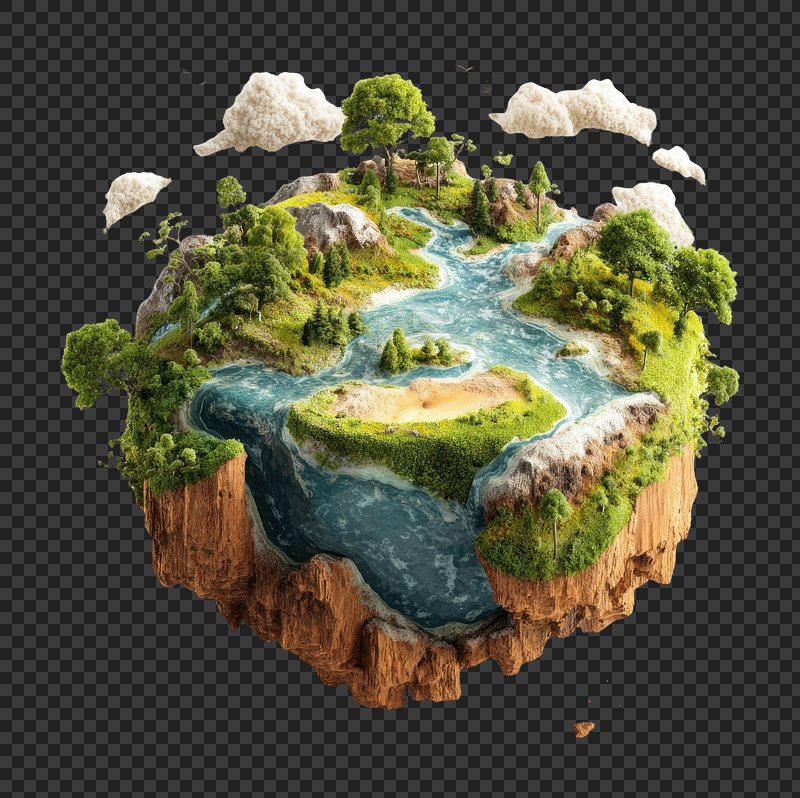 Floating island with diverse ecosystems. https://www.rawpixel.com/image/25112928/floating-island-with-diverse-ecosystemsView license