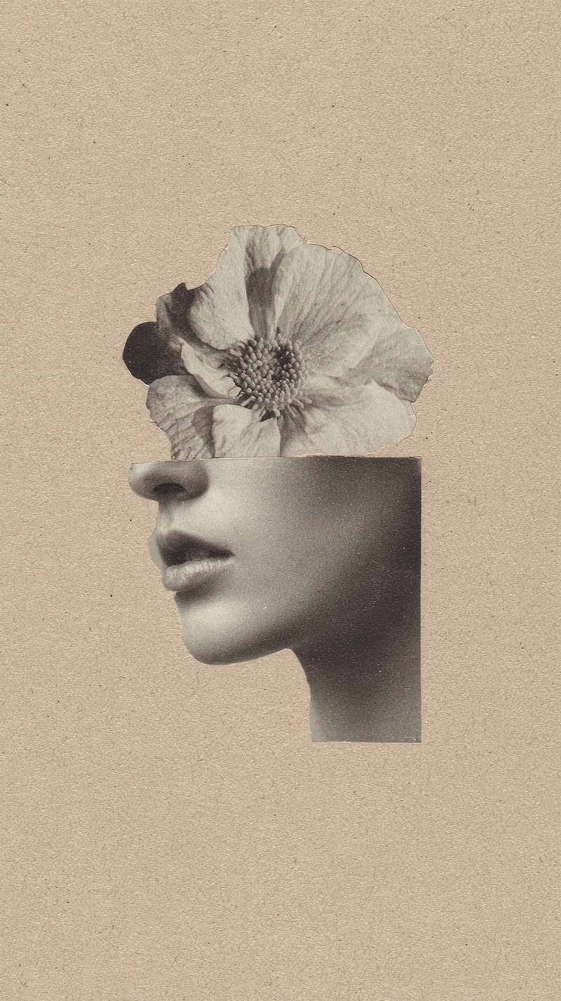 Woman with a flower art illustration collage. https://www.rawpixel.com/image/19119235/woman-with-flower-art-illustration-collageView license