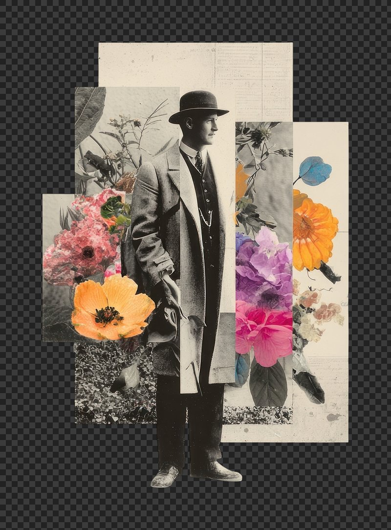 PNG Vintage collage with floral elements. https://www.rawpixel.com/image/25630854/png-vintage-collage-with-floral-elementsView license