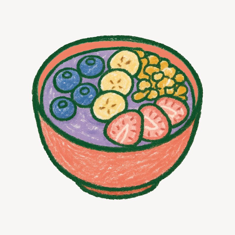 Colorful fruit smoothie bowl illustration. https://www.rawpixel.com/image/23576733/colorful-fruit-smoothie-bowl-illustrationView license
