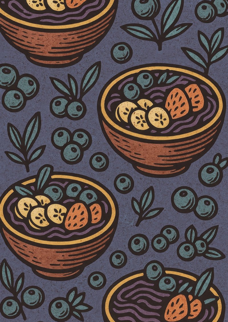 Rustic acai bowl illustration. https://www.rawpixel.com/image/22286072/rustic-acai-bowl-illustrationView license