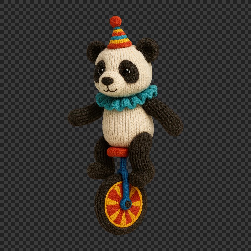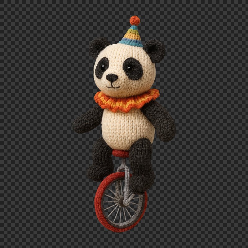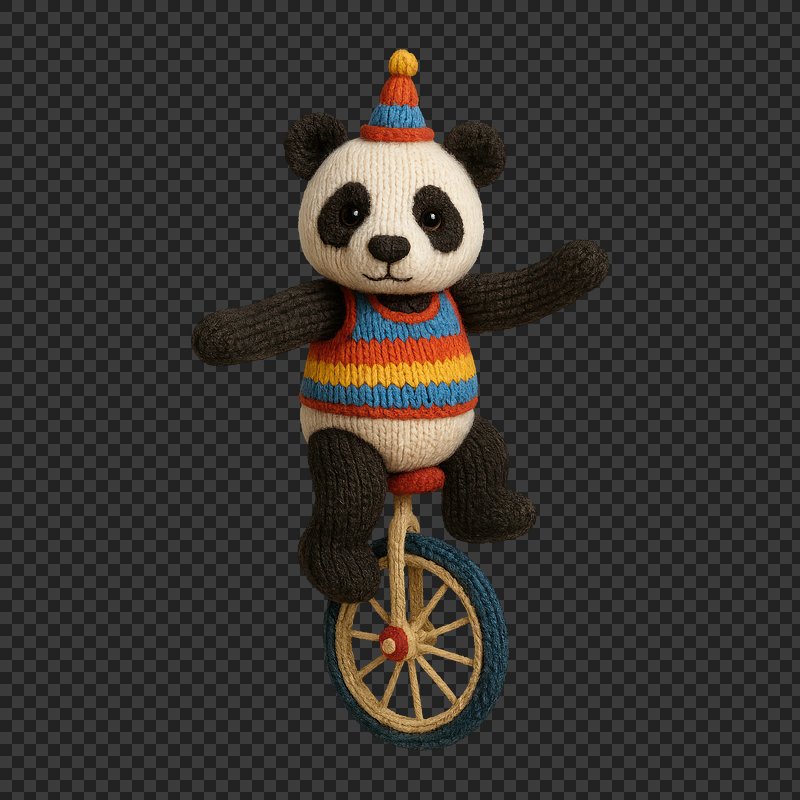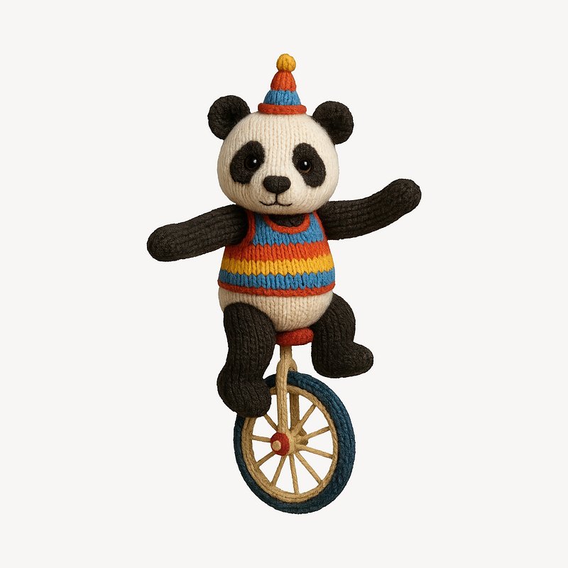 PNG Knitted panda unicycle circus fun https://www.rawpixel.com/image/24473971/png-knitted-panda-unicycle-circus-funView license