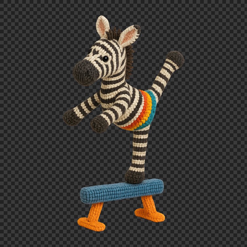 PNG Crocheted zebra toy balancing. https://www.rawpixel.com/image/24520900/png-crocheted-zebra-toy-balancingView license