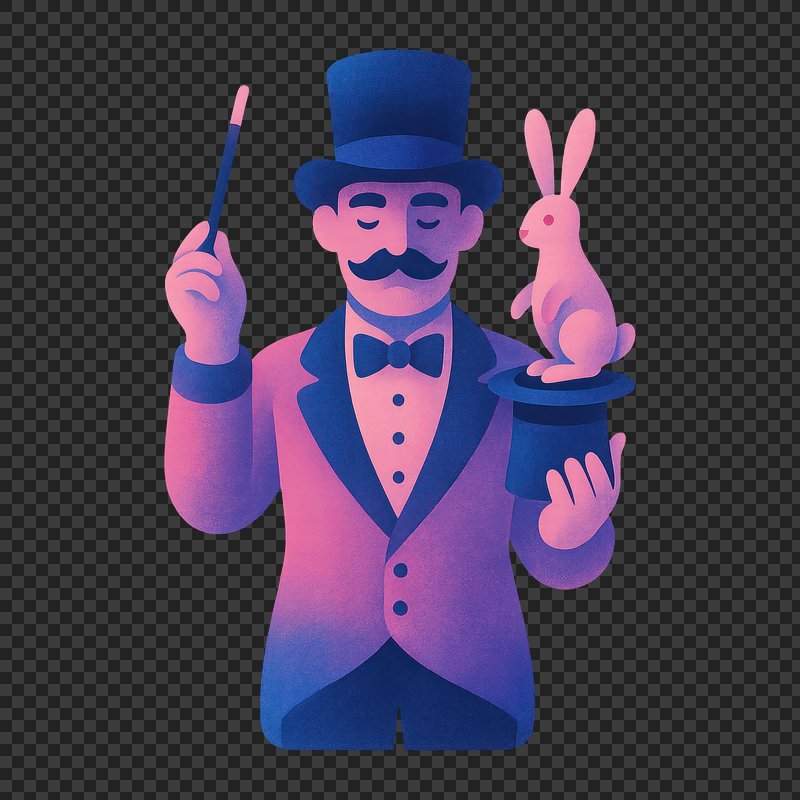 PNG Magician performing classic rabbit trick. https://www.rawpixel.com/image/24591771/png-magician-performing-classic-rabbit-trickView license