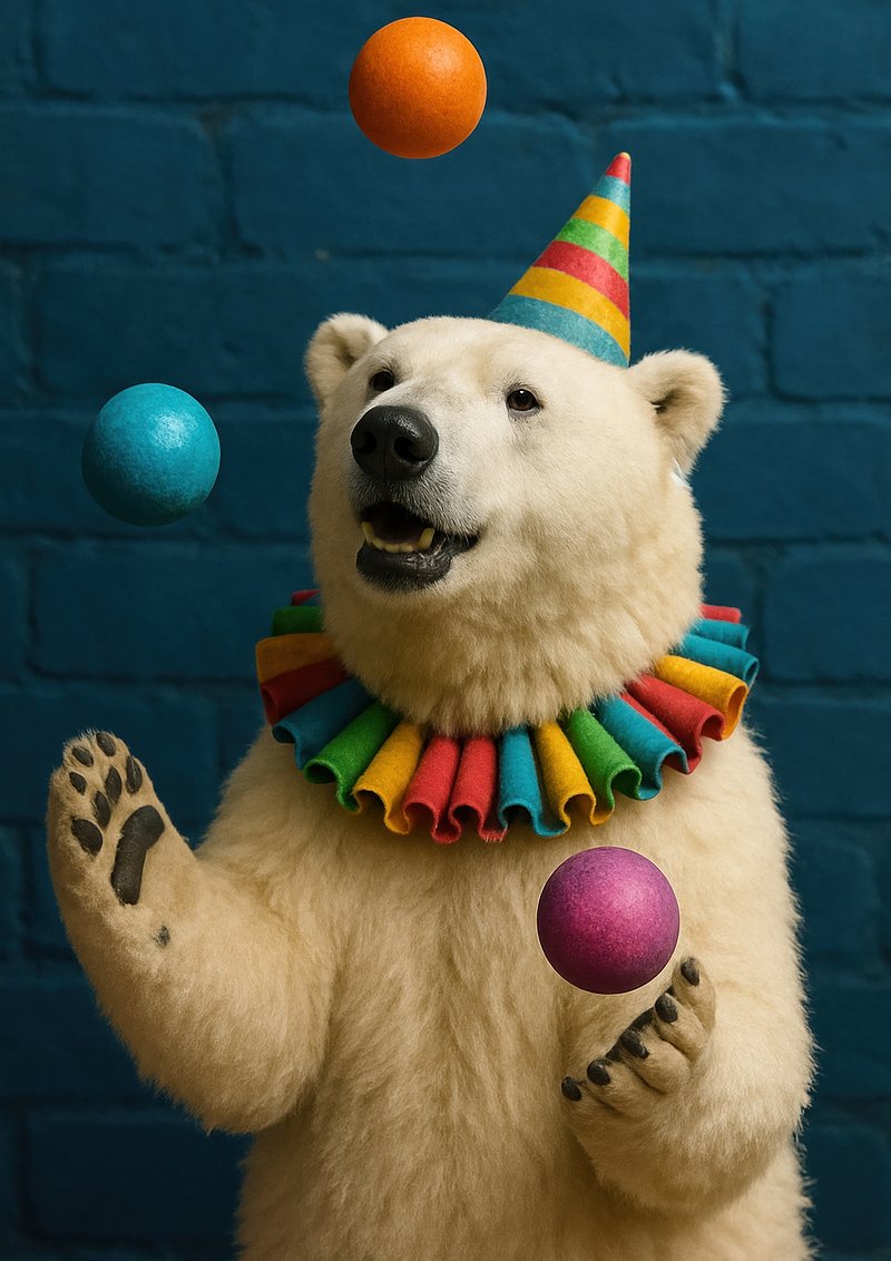 Playful polar bear juggles joyfully. https://www.rawpixel.com/image/18158046/playful-polar-bear-juggles-joyfullyView license