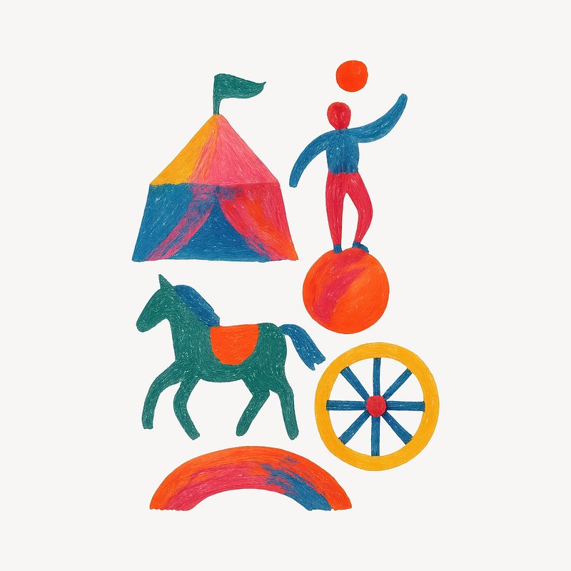 PNG Colorful circus-themed illustration. https://www.rawpixel.com/image/23876609/png-colorful-circus-themed-illustrationView license