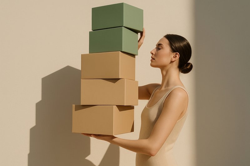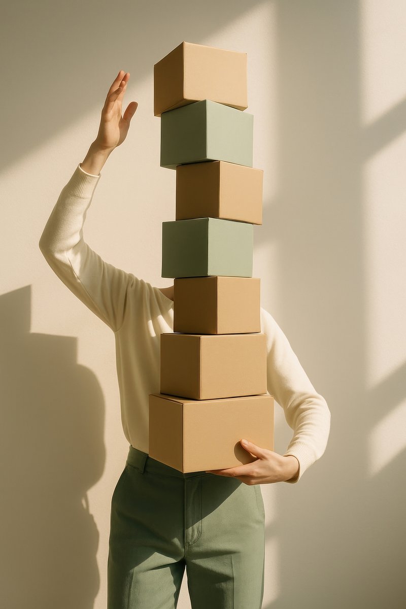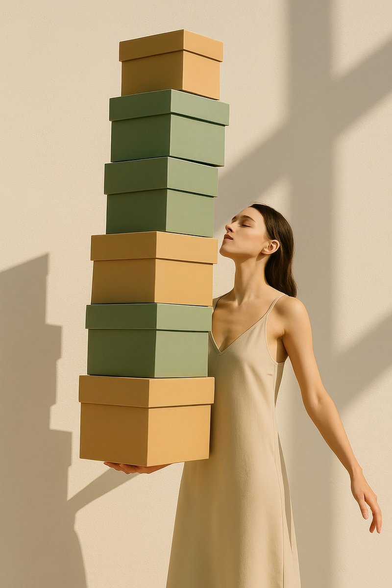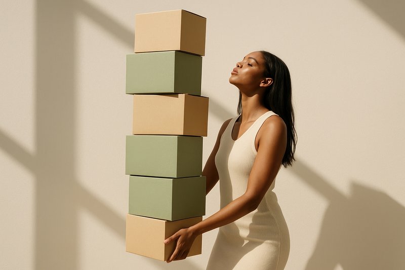 Woman balancing stack boxes. https://www.rawpixel.com/image/24472628/woman-balancing-stack-boxesView license