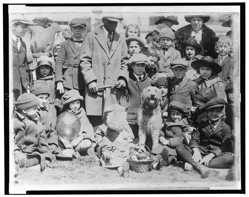 In the absence of President and Mrs. Harding, Laddie Boy acted as host for the many children who rolled eggs on the White… https://www.rawpixel.com/image/7004530/photo-image-dog-people-houseFree Image from public domain license