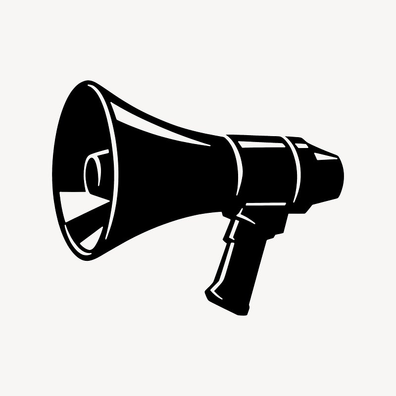 Black megaphone silhouette illustration. https://www.rawpixel.com/image/25797414/black-megaphone-silhouette-illustrationView license