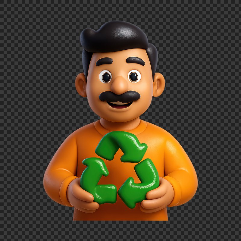 PNG Cartoon man holding recycling symbol. https://www.rawpixel.com/image/20580594/png-cartoon-man-holding-recycling-symbolView license
