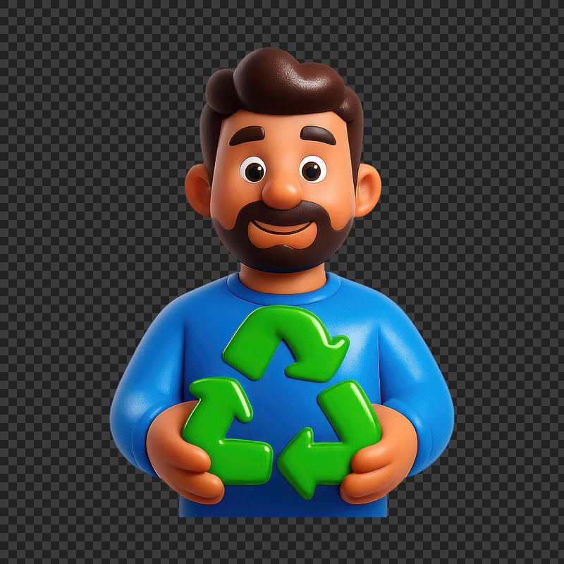 3D character promoting recycling. https://www.rawpixel.com/image/21188379/character-promoting-recyclingView license