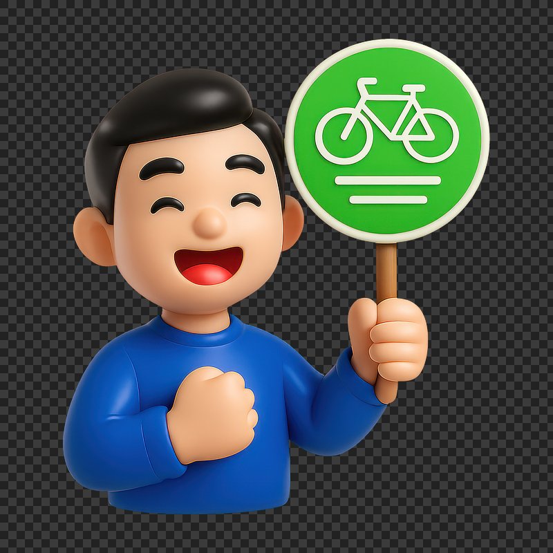 PNG 3D character holding bicycle sign https://www.rawpixel.com/image/20355026/png-character-holding-bicycle-signView license