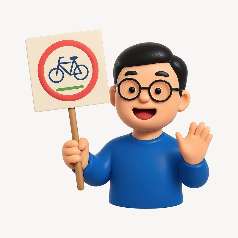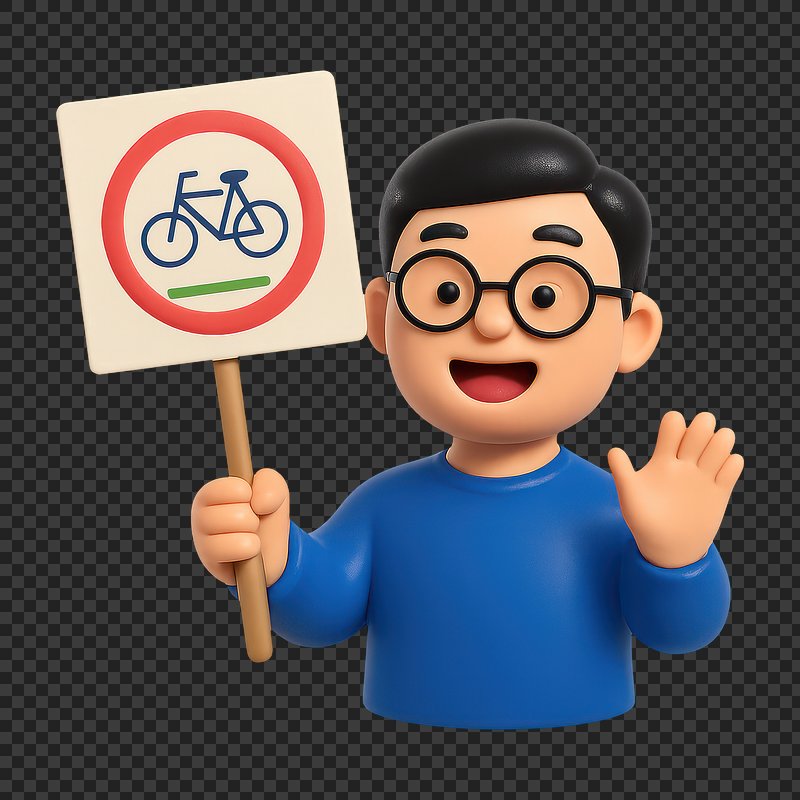 3D character holding no-bicycle sign. https://www.rawpixel.com/image/20994180/character-holding-no-bicycle-signView license