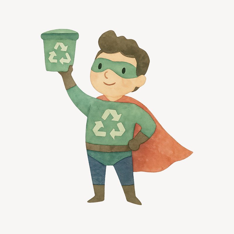 Eco-friendly superhero promotes recycling. https://www.rawpixel.com/image/19257116/eco-friendly-superhero-promotes-recyclingView license