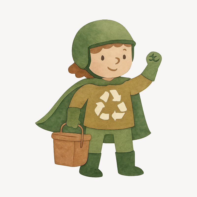 Eco superhero promoting recycling. https://www.rawpixel.com/image/19447757/eco-superhero-promoting-recyclingView license