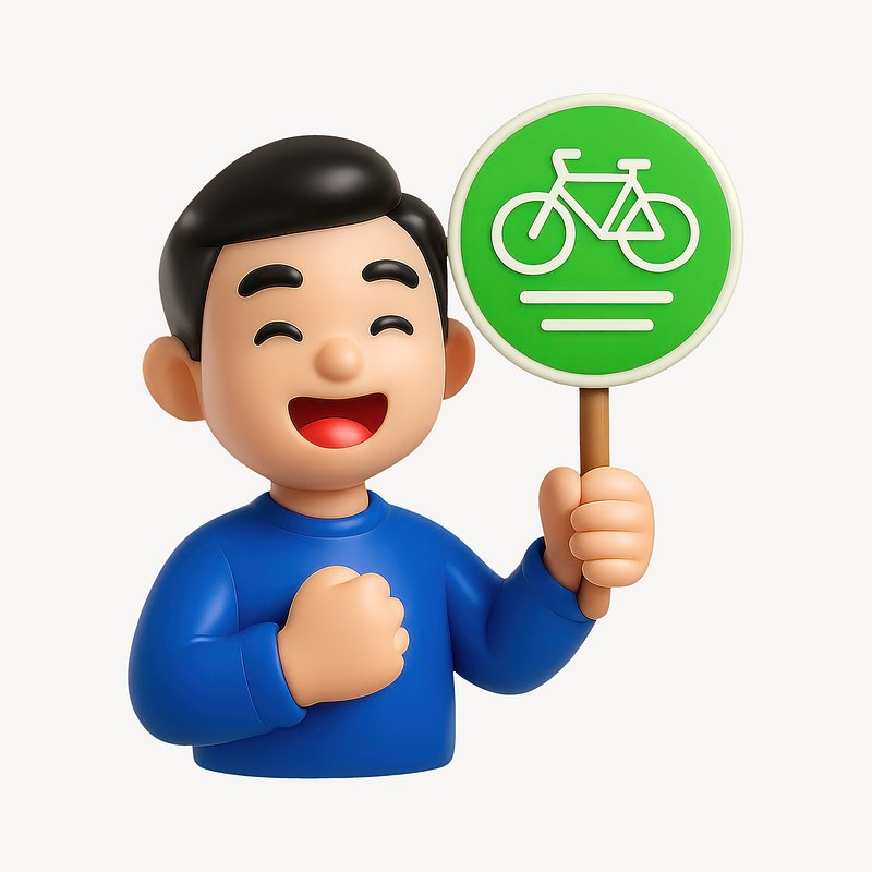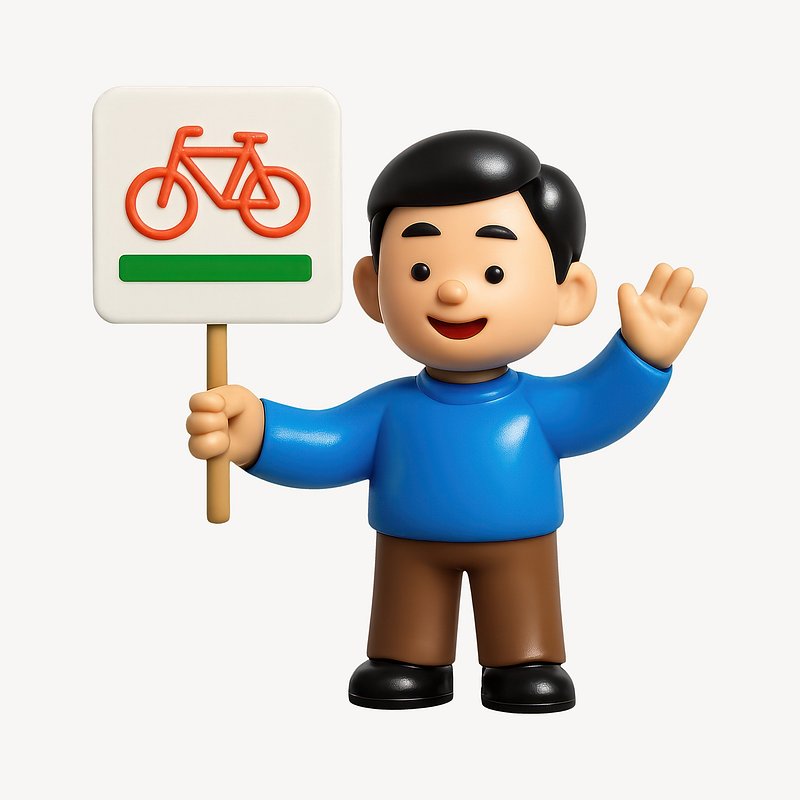 3D character holding bicycle sign https://www.rawpixel.com/image/20999864/character-holding-bicycle-signView license
