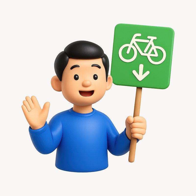 Cartoon character holding bicycle sign. https://www.rawpixel.com/image/20999527/cartoon-character-holding-bicycle-signView license