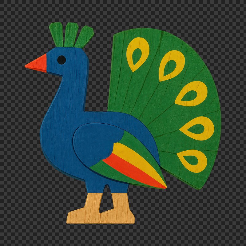 PNG Colorful wooden peacock illustration. https://www.rawpixel.com/image/21898542/png-colorful-wooden-peacock-illustrationView license