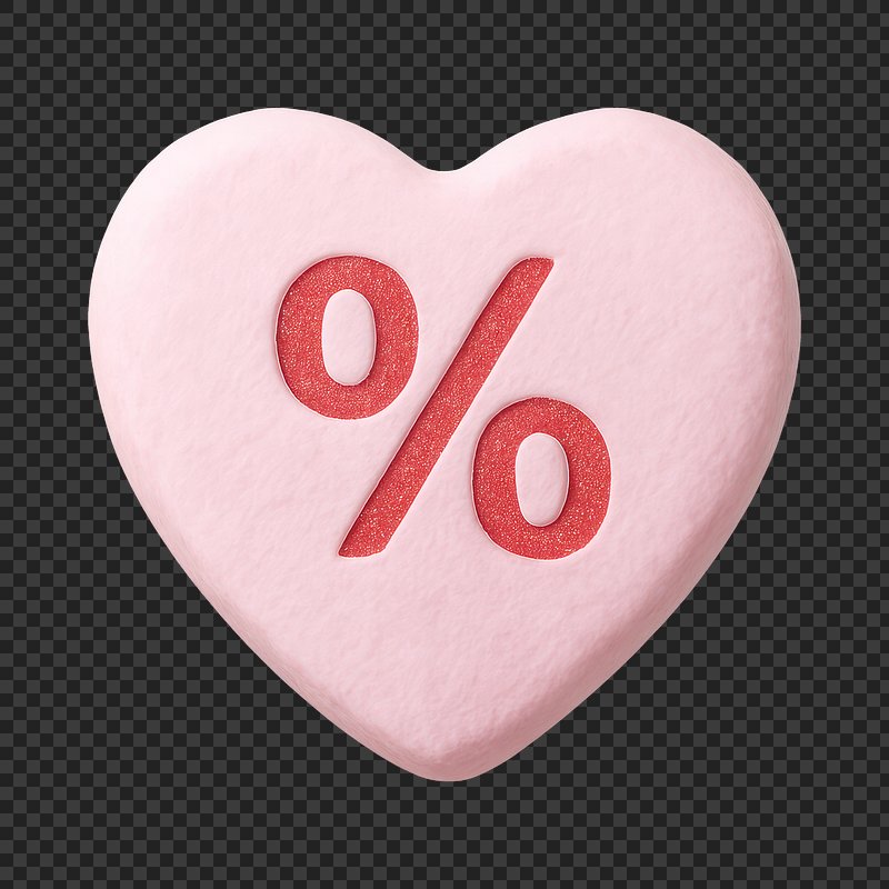 PNG Heart-shaped percentage symbol illustration. https://www.rawpixel.com/image/24186691/png-heart-shaped-percentage-symbol-illustrationView license