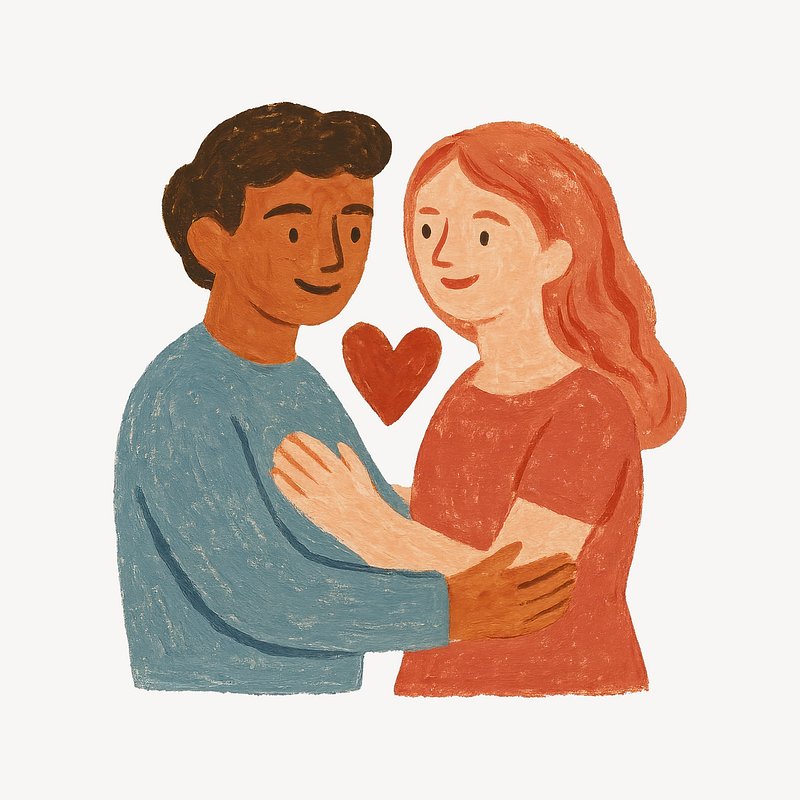 Illustrated couple embracing affectionately. https://www.rawpixel.com/image/24858042/illustrated-couple-embracing-affectionatelyView license