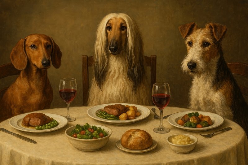 Dogs dining elegant meal https://www.rawpixel.com/image/17295686/dogs-dining-elegant-mealView license