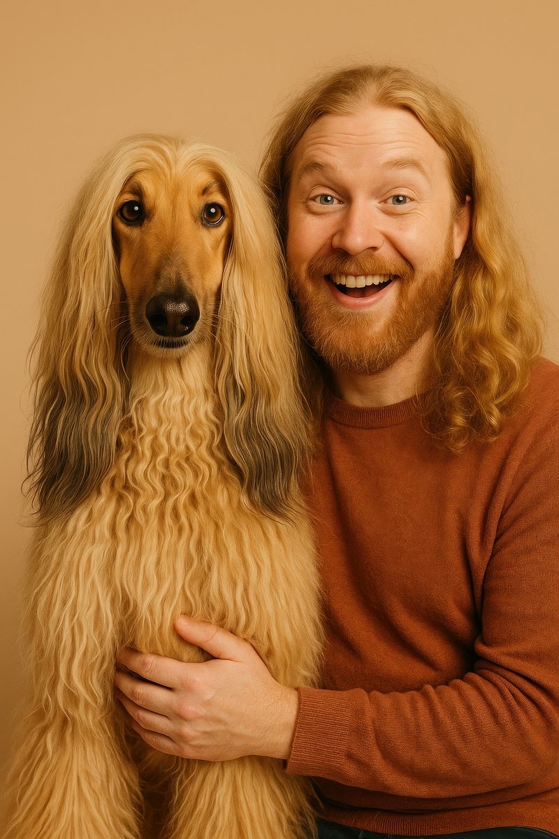 Happy man with Afghan Hound https://www.rawpixel.com/image/17788665/happy-man-with-afghan-houndView license