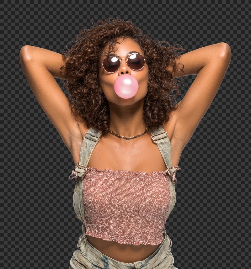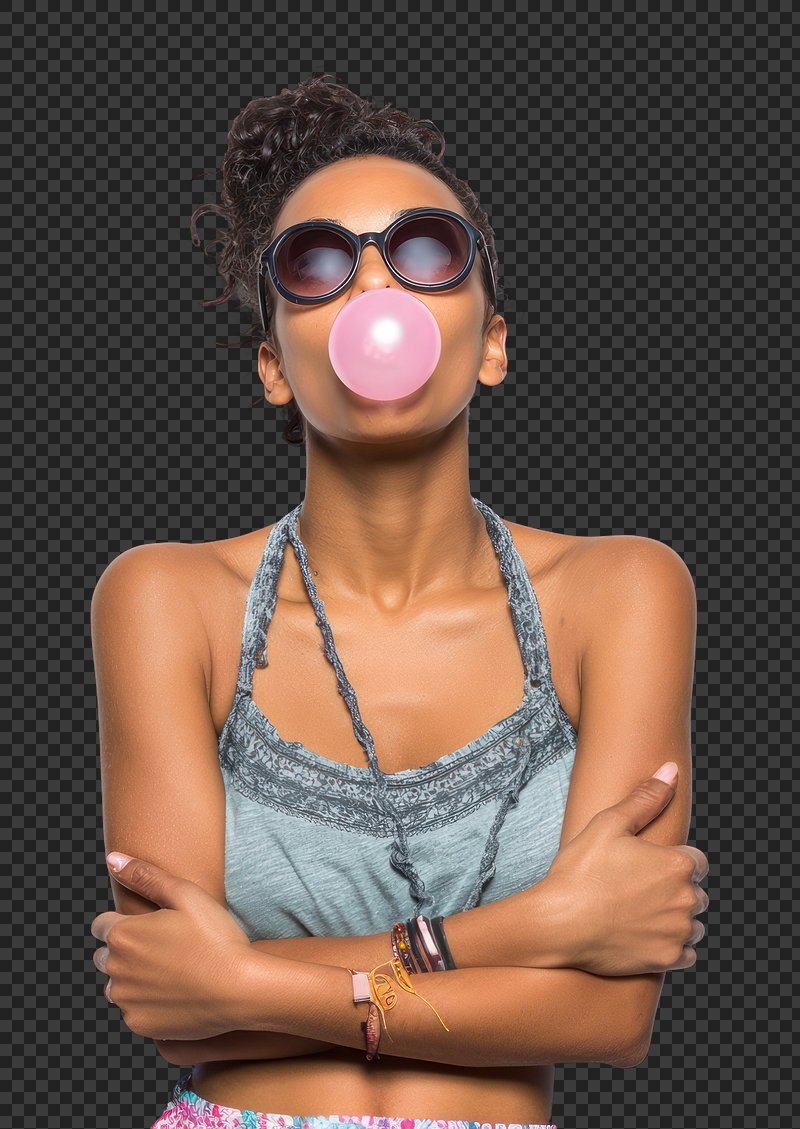 PNG Stylish woman blowing bubblegum. https://www.rawpixel.com/image/25977398/png-stylish-woman-blowing-bubblegumView license