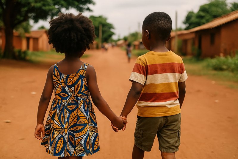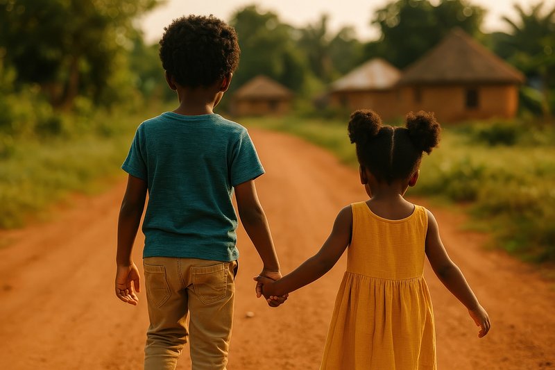 Children holding hands, village road. https://www.rawpixel.com/image/17759950/children-holding-hands-village-roadView license