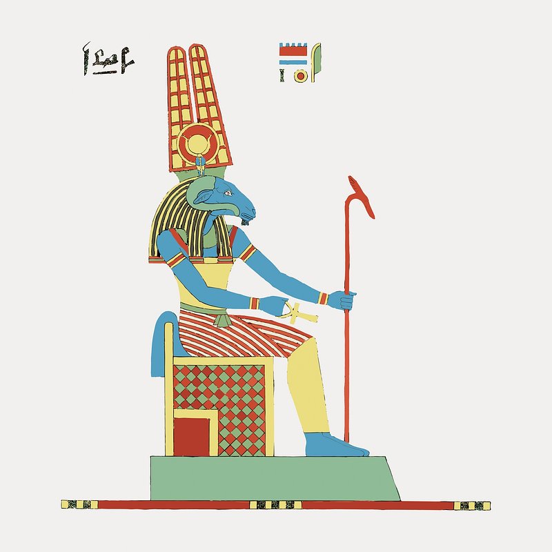 Egyptian god Amun vintage illustration isolated on white, vector. Remixed by rawpixel. https://www.rawpixel.com/image/16721567/vector-art-vintage-illustrationView license