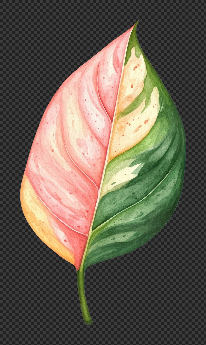 Aglaonema Siam Aurora Leaf leaf illustration watercolor. https://www.rawpixel.com/image/18176834/aglaonema-siam-aurora-leaf-leaf-illustration-watercolorView license