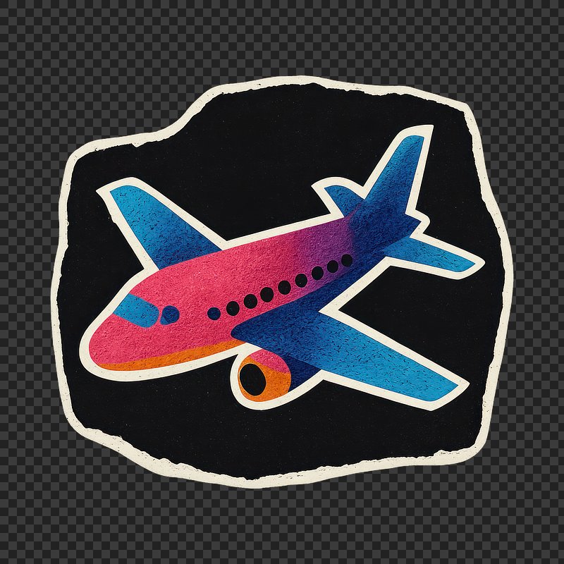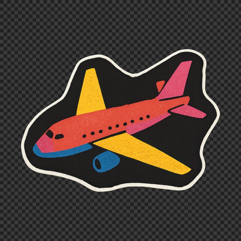 PNG Colorful airplane sticker illustration. https://www.rawpixel.com/image/24503681/png-colorful-airplane-sticker-illustrationView license