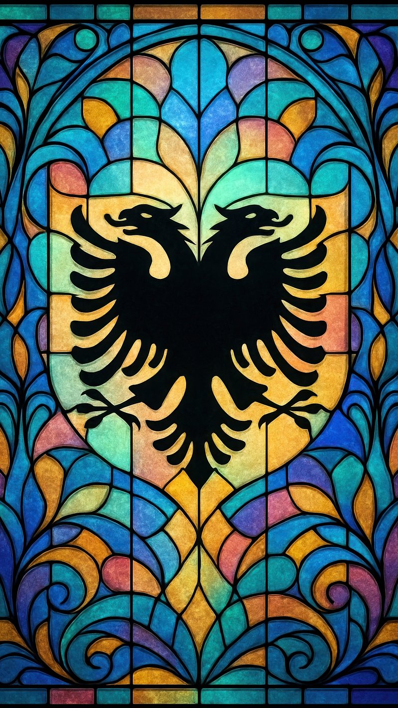 Albanian flag with double-headed eagle. https://www.rawpixel.com/image/19237839/albanian-flag-with-double-headed-eagle View license
