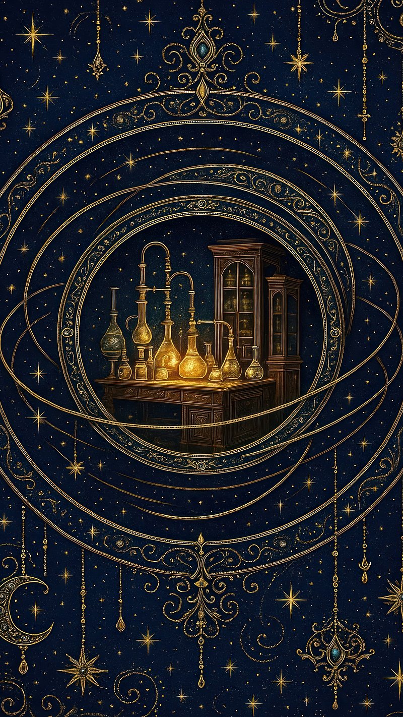 Alchemy lab amidst celestial wonders. https://www.rawpixel.com/image/18995628/alchemy-lab-amidst-celestial-wondersView license