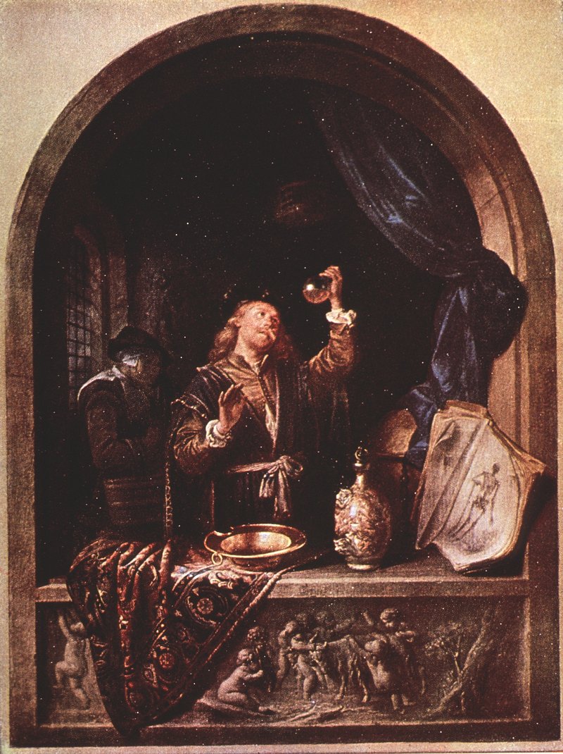 An alchemist peering into a glass vessel. Mezzotint by F.R. Say, 1819, after J. Northcote. https://www.rawpixel.com/image/13959250/image-face-person-artFree Image from public domain license