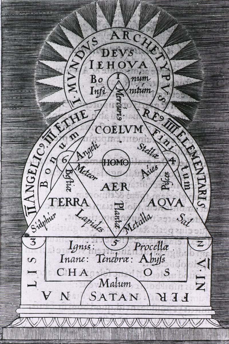 Three-tiered symbolic diagram of the art of alchemy: top level, symbols of the states of matter; middle level, cabalistic… https://www.rawpixel.com/image/13958716/image-cartoon-person-bookFree Image from public domain license