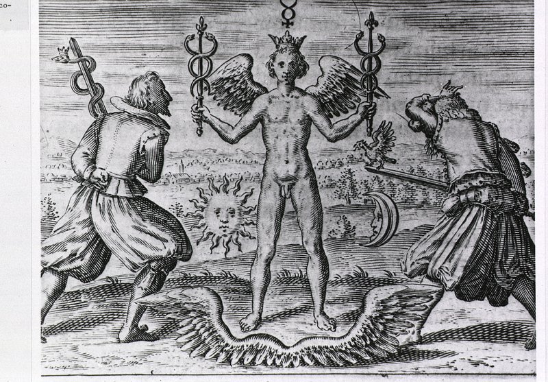 An alchemical adept carrying the vase of Hermes, which is inscribed "Let us go to seek the nature of the four elements".… https://www.rawpixel.com/image/13956095/image-cartoon-people-artFree Image from public domain license