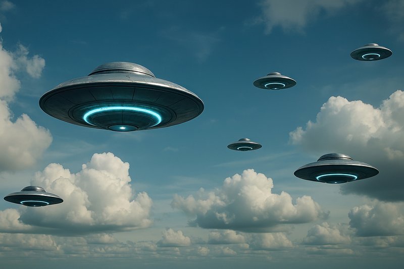Futuristic UFOs hover skyward. https://www.rawpixel.com/image/17415338/futuristic-ufos-hover-skywardView license