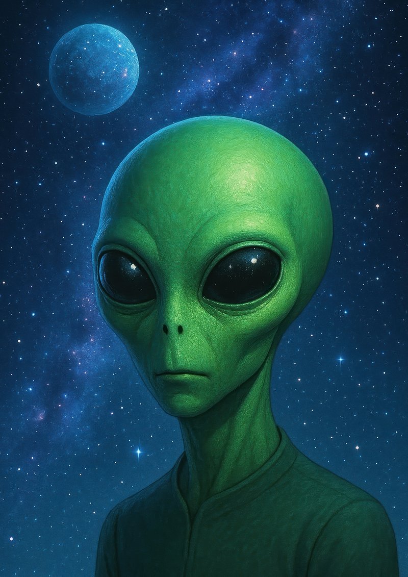 Green alien under starry sky. https://www.rawpixel.com/image/19050926/green-alien-under-starry-skyView license