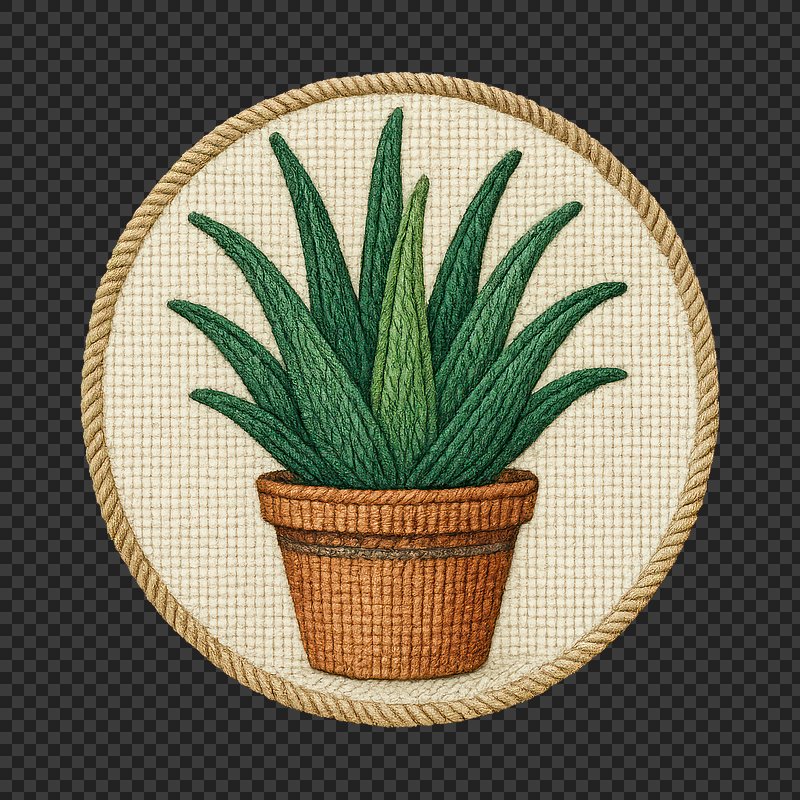 PNG Embroidered aloe vera plant illustration. https://www.rawpixel.com/image/24371628/png-embroidered-aloe-vera-plant-illustrationView license